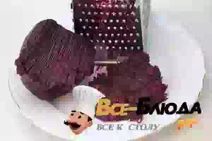 1. Свеклу вымыть и сварить, не очищая, до мягкости. Когда вареная свекла остынет, разрезать пополам, одну половинку очистить и натереть на мелкой терке.
