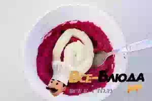 5. Добавить к получившемуся свекольно-селедочному крему немного майонез. Убрать в холодильник на 1 час.