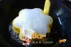 3. Белок поджарить на сковороде или в формочке-держателе, чтоб не растекалось. Сверху выложить холодный желток, красиво украсить и подать. Я практически ледяной белок взбила с небольшим количеством соли в пену. Вылила в силиконовую форму.