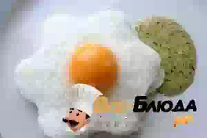 3. Белок поджарить на сковороде или в формочке-держателе, чтоб не растекалось. Сверху выложить холодный желток, красиво украсить и подать. Я практически ледяной белок взбила с небольшим количеством соли в пену. Вылила в силиконовую форму.