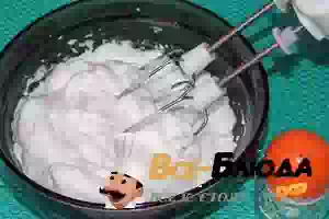 2. В белки добавляем пару щепоток соли и взбиваем миксером до упругой пены.