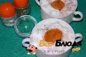 3. Формы, в которых будем выпекать яйца, смазываем растительным маслом и заполняем белковой массой (но не до краев), оставляя в центре небольшое углубление.