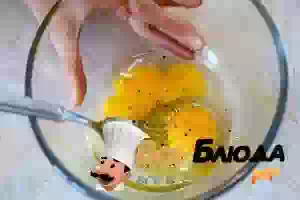 4. В небольшой миске размешать вилкой яйца с солью и молотым черным перцем.