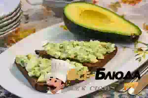 5. Половинку небольшой луковицы очистить, мелко нарезать и перемешать вилкой в салатнике вместе с авокадо и яйцами.