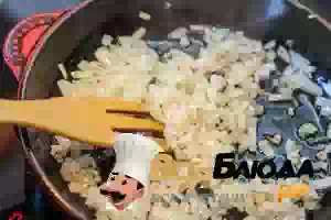 2. Репчатый лук очистить, мелко порубить и подрумянить на растительном масле.