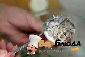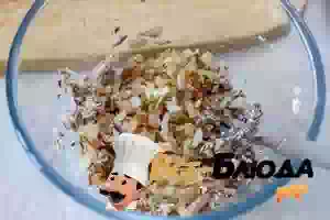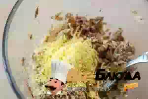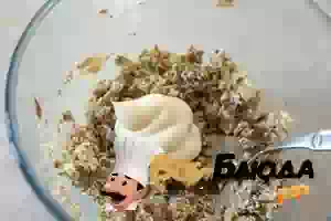 7. Добавить майонез, чтобы начинка стала более мягкой. По желанию можно добавить тертый сыр.