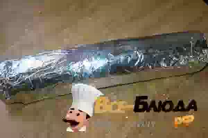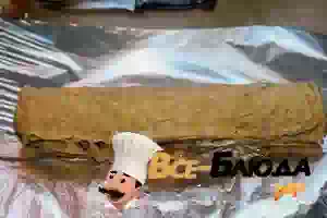 8. и скатать рулетом. Обернуть рулет фольгой и убрать в холодильник на 30 минут.