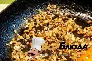 3. Обжарить с маслом первым лук, а после его размягчения - грибы.