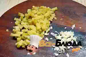 2. Лук мелко нарезать. Так же поступить с грибами.