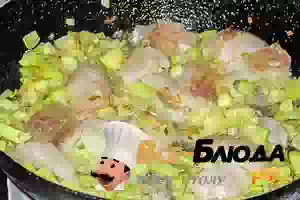 3. Прибавляем к пассерованным овощам и выпариваем воду (образовавшийся сок), периодически помешивая.