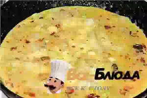4. Взбиваем яйца вилочкой, добавляем к яйцам специи по вкусу и выливаем в сковородку. К этому времени вся влага выпарилась. Теперь немного убавляем огонь.
