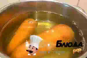 1. Отделить филе жирной сельди от костей. Или взять готовое филе. Хорошо вымыть морковь, отварить ее в подсоленной воде и дать ей остыть при комнатной температуре. Чем ярче цвет морковки, тем аппетитнее выглядит паштет/салат.