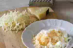 3. Для начинки сыр и вареные яйца натереть на мелкой терке.