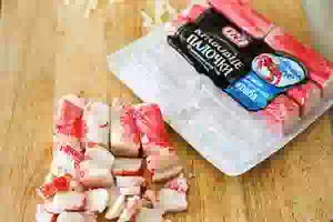 4. Крабовые палочки Снежный краб VIČI порезать мелкими кусочками.
