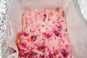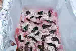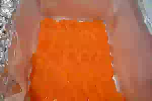 2. Филе карпа (или сазана) нарежьте небольшими полосками и закройте морковный слой. Присыпьте перцем, солью и половиной порции сухого желатина.
