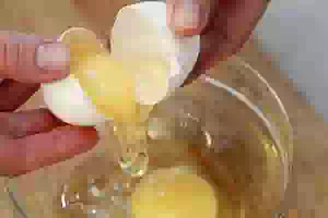 1. В миску, где будете смешивать продукты для омлета, разбить куриные яйца.