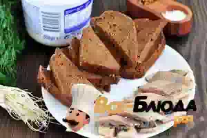 1. Нарежьте ржаной хлеб удобными небольшими кусочками. Сельдь очистите от головы, хвоста, костей и внутренностей, нарежьте филе сельди кусочками. Лук и укроп помойте, обсушите.