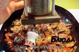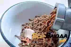 4. Пропустить через мясорубку с мелкой решеткой обжаренную печенку с овощами. Сделать это надо не менее 3 раза. Только тогда печеночный паштет приобретет сливочно-гладкую структуру.