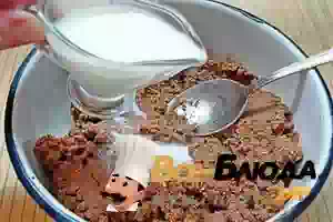 5. Растереть паштет с буквально столовой ложкой молока и только после этого добавить еще немного молока, продолжая растирать печеночную массу, пока масса не станет мягкой и пластичной. На этом этапе проверить паштет на соль.
