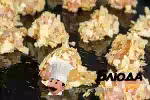 4. Противень смазать маслом и разложить на нем куриные наггетсы. Поставить противень в духовку и запекать примерно 15 минут. К готовым наггетсам можно подать любимый соус.