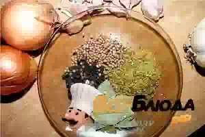 2. Всё, что нам необходимо, это эдакий набор специй: лук, чеснок (много), перец, лаврушка и можно каких-нибудь приправ по желанию. У меня что-то кавказского типа попалось, и оказалось (на мой субъективный взгляд) совершенно подходящим к данному случаю.