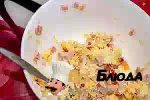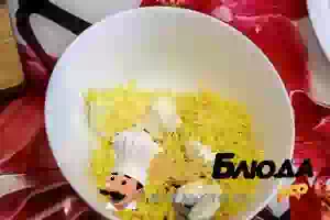 2. Ветчину и перец порезать кубиками, добавить в миску с сыром и хорошо перемешать. Начинка готова.