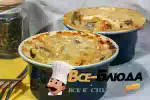 4. Разложить почки по формочкам для запекания (в кокотницы). Сверху обильно посыпать сыром. Запекать в нагретой до 180С духовке до появления румяной корочки и готовности почек. Жюльен подавать горячим в формочках.