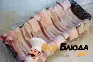 6. Террин удобно готовить в прямоугольной форме для кекса. Рукав для запекания должен быть чуть длиннее, чем форма. Разрезать его вдоль и застелить им форму. Затем уложить внахлест тонкие ломтики бекона. Полоски бекона должны быть довольно длинными, чтобы их концы свисали за края формы.
