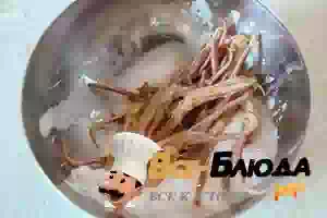 3. Полить приготовленным маринадом утиные языки, перемешать, чтобы он равномерно распределился по язычкам. Миску с язычками в маринаде оставить на полчаса при комнатной температуре, периодически помешивая.