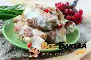 10. Затем сложите рулетики в форму для запекания, залейте сметаной и запекайте в духовке 30 минут при температуре 180 градусов.