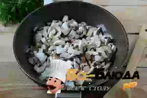 4. Выложите грибы вместе с луком в сковороду и жарьте до готовности.