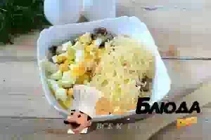 6. Смешайте обжаренные грибы с измельченным яйцом и тертым сыром. Хорошенько перемешайте начинку, посолите по вкусу.