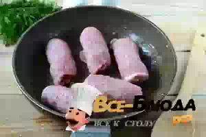 9. Обжарьте рулетики на сковороде до легкого подрумянивания. Если рулетики при термообработке будут разворачиваться, скрепите их зубочисткой.