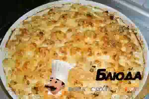 2. Слила молочно-водяную смесь с цветной капусты и переложила в смазанную сливочным маслом форму. Всё залила сливочно-сырной смесью и поставила в духовку, разогретую до 200 С, на десять минут.