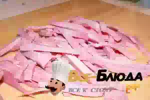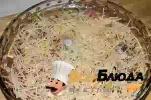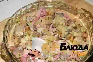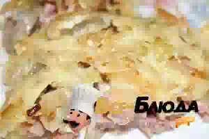 3. Уложить слоями в формы для жюльена ветчину, лук, грибы.