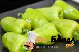 1. Каждый перец вымыть под проточной водой, досуха вытереть полотенцем и смазать растительным маслом. Разложить перцы на смазанном маслом противне и поставить в прогретую до 200С духовку на 25 минут.