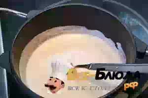 3. Для приготовления соуса бешамель обжарить муку, добавить сливочное масло и готовить, помешивая, 1-2 минуты. Снять посуду с плиты и тонкой струйкой влить молоко, активно размешивая венчиком, чтобы не образовалось комочков. Вернуть посуду на огонь и варить при постоянном помешивании на минимальном нагреве до загустения соуса. Приправить солью, молотым мускатным орехом и белым перцем. Снять соус с плиты, дать немного остыть и добавить яйца, предварительно размешанные в миске вилкой. По желанию в соус бешамель можно еще добавить тертый пармезан.
