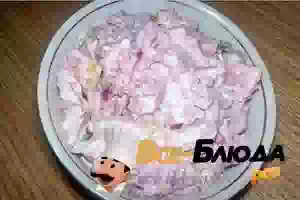 1. Картофель и свёклу сварить и очистить. Из селёдки удалить кости. Все продукты мелко порезать.