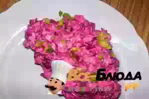 1. Картофель и свёклу сварить и очистить. Из селёдки удалить кости. Все продукты мелко порезать.