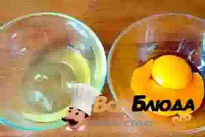 2. Можно приступать к приготовлению омлета. Отделить желтки от белков, разложить их по разным мискам.