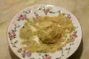 5. В небольшую посуду насыпаем панировочные сухари. Формируем из пюре шарики и обваливаем их в панировке.