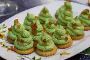 Как приготовить " Закуска на крекерах с муссом из авокадо и красной икрой «Ёлочки»"