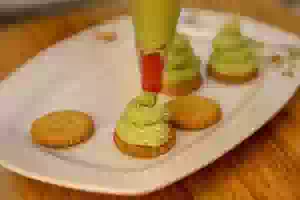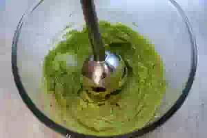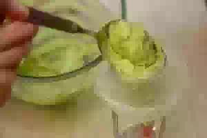 5. Готовым муссом из авокадо наполнить кулинарный мешок со звездчатой насадкой. Для удобства мешок с насадкой установите в высокий стакан, и наполняйте его муссом.