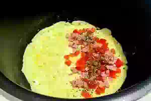 Как приготовить "Омлет, фаршированный колбасой и помидорами"