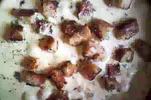2. Ломтик хлеба нарезать мелко и обжарить в сливочном масле (2 ч.л. масла сюда пошли).