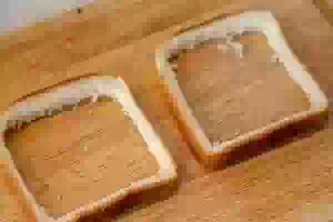 1. В ломтиках хлеба аккуратно вырезать мякиш, оставив «рамки» шириной 1 см.