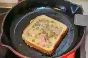 7. Лопаткой перевернуть яичницу в хлебе.