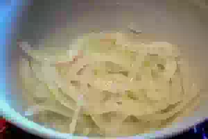 1. Подготовить лук: очистить и измельчить полукольцами. При желании на пару минут оставить в маринаде из яблочного уксуса и щепотки сахара. Если лук вам не по душе, то опустите этот ингредиент.