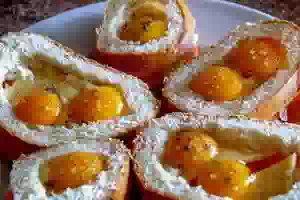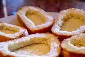 4. Одну часть оставить как есть, а у другой, отступив от корочки 1-.,5 см, вырезать и вынуть мякиш.