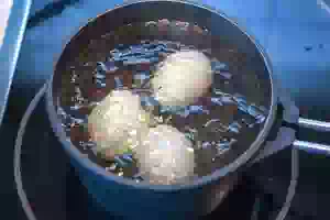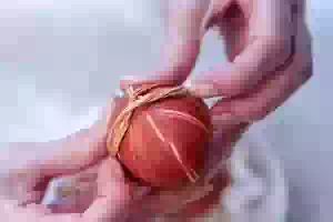 1. Приготовить отвар из луковой шелухи. Для этого шелуху промыть проточной водой, сложив в дуршлаг. Переложить промытую шелуху в кастрюлю, которую не жалко или которую легко отмыть. Отвар из луковой шелухи окрашивает посуду, поэтому продумайте заранее, в чем вы будете красить пасхальные яйца. Чем больше шелухи, тем насыщеннее получится отвар, а следовательно, и ярче цвет яичной скорлупы. Довести содержимое кастрюли до кипения, добавить соль и проварить на слабом огне 30 минут, чтобы отвар получился насыщенного бордово-красного цвета. По желанию готовый луковый отвар процедить.